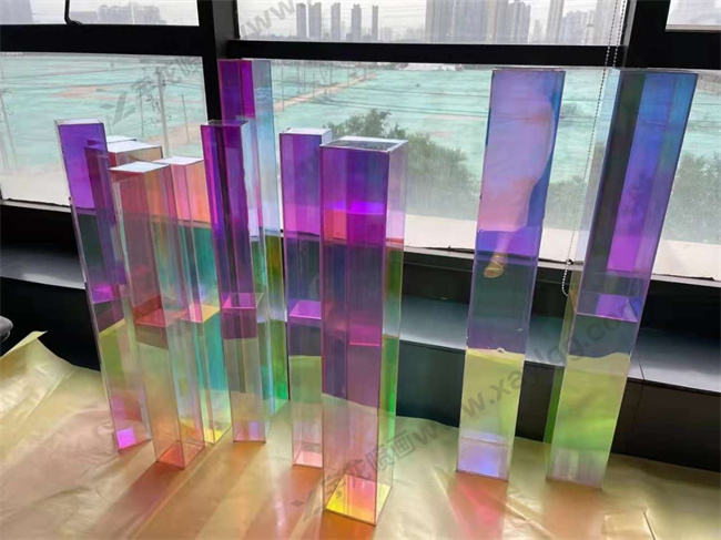 特点:彩虹膜的特点是亮度好,膜面均匀如镜面效果,耐高温,加工充分利用光干涉原理,在光线照射下,各层次间的折射和干涉使层次间多角度层式色泽变化,如同天空彩虹般效果。
